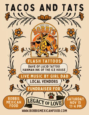 Come join me at Bobbis Mexican Food in Camarillo for some flash tattoos and the best mexican food ever!